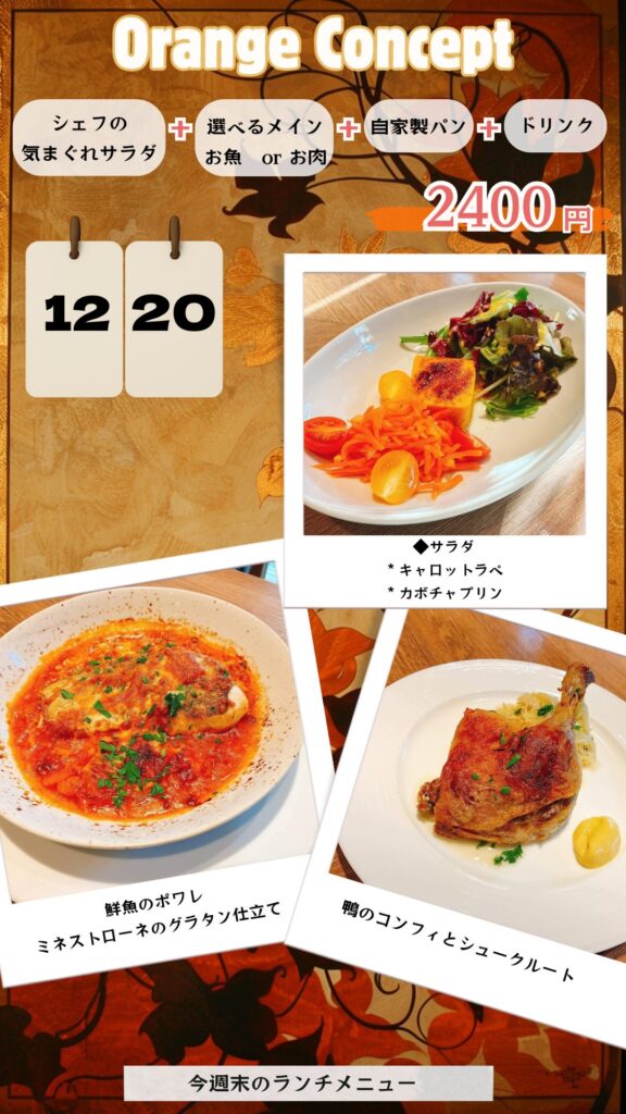 週末はオレンジコンセプトで美味しいお料理を食べて締めくくりましょう!