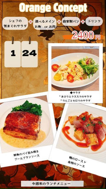 週末はオレンジコンセプトで美味しいお料理を食べて締めくくりましょう!